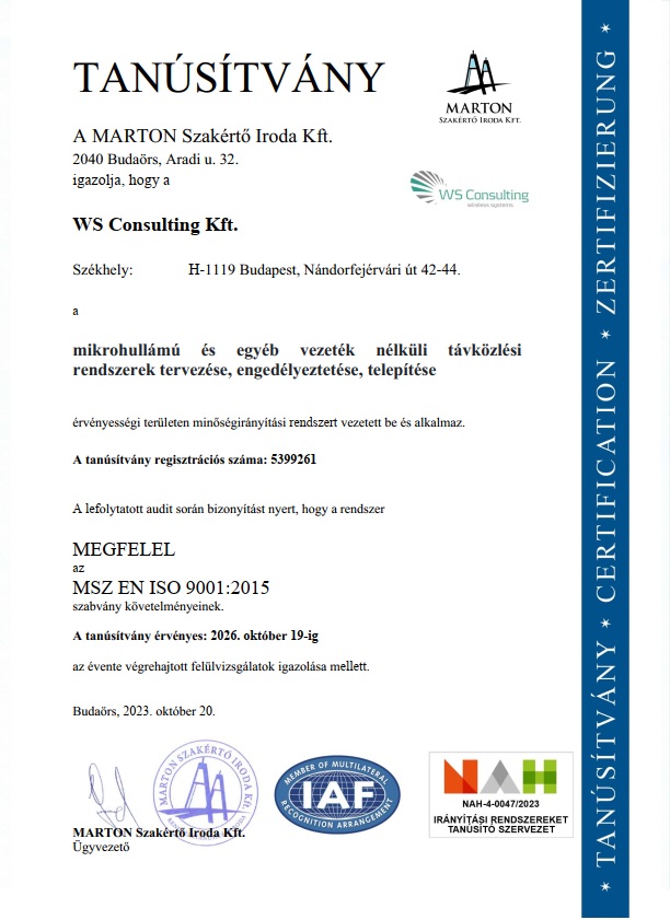 A WS Consulting 2001-es alapítása óta tevékenykedik a távközlési piacon vezeték nélküli rádiós és átviteltechnikai hálózatok tervezését és optimalizálását végző szolgáltatóként. Mára cégünk Magyarország legnagyobb független, mikrohullámú technológiai mérnöki megoldásokat nyújtó cége, partnereink között tudhatjuk hazánk legnagyobb mobil és vezetékes távközlési szolgáltatóit. A hálózattal kapcsolatos gazdasági aspektusok figyelembevételével a WSC egyedülálló műszaki tervezési folyamatokat biztosít ügyfelei számára: